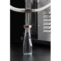 Un serbatoio in vetro borosilicato (Pyrex) e tubazioni progettate per l'industria farmaceutica garantiscono compatibilità con qualsiasi prodotto alimentare. Posizionando la bottiglia sotto ULTRAFILLER, il vuoto creato aspira il liquido permettendo di fluire nella bottiglia senza passare attraverso pompe o altri elementi meccanici che potrebbero riscaldarlo e danneggiarlo.